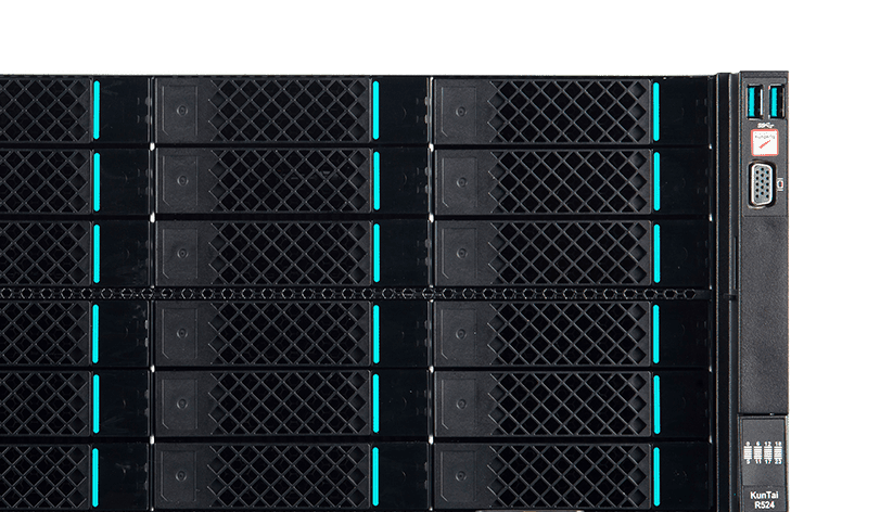 KunTai R524 存储型服务器是开元数码基于鲲鹏处理器推出的新一代 ARM数据中心服务器。主要面向存储业务,具有海量存储、高性能、低功耗以及易扩展的特点,适合为大数据分析、软件定义存 储等应用场景的工作负载进行髙效加速。